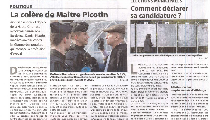 Ancien élu local et député de la Haute-Gironde, avocat au barreau de Bordeaux, Daniel Picotin ne décolère pas contre la réforme des retraites qui menace la profession d'avocat...